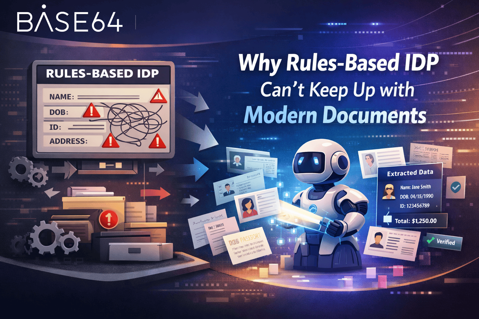 Eliminate manual document processing and outdated text extraction systems. Base64’s Document Intelligence Platform applies the latest AI technology to help your organization achieve new levels of efficiency, accuracy, and digital transformation.